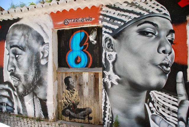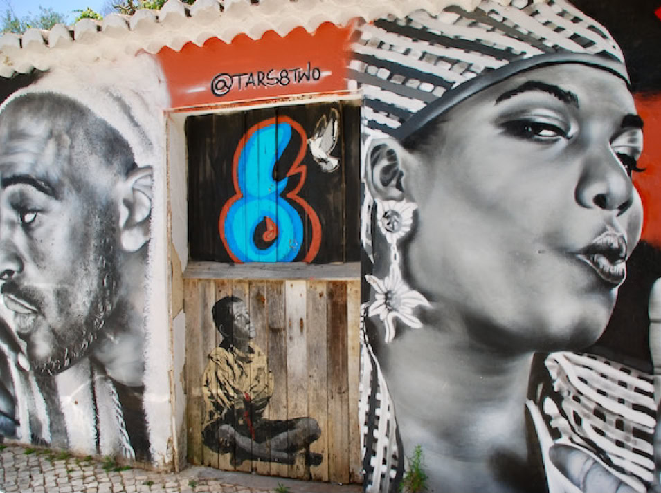 Auf unseren Spaziergängen durch Lagos, fallen uns die vielen Straßenbilder an Mauern, Türen und Hauswänden auf. Also schnappen wir uns unsere Fotoapparate und machen uns auf die Suche nach den sehr beeindruckenden Graffiti Bildern. Da wir bei unserem ersten Streifzug nicht alles finden, wiederholen wir unser Vorhaben und entdecken an vielen versteckten Ecken weitere Straßenkunst. Auf diese Weise die Stadt zu erleben macht uns wirklich Spaß und unsere Augen finden neben den Graffiti auch andere schöne Motive in den Straßen.