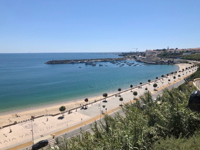 Unsere erste Nacht vor Anker in Cascais. Endlich! Es ist zwar etwas Dünung, aber nach unserem langen Aufenthalt in der Marina genießen wir es einfach auf dem Wasser zu sein und von hier in die Bucht zu schauen.