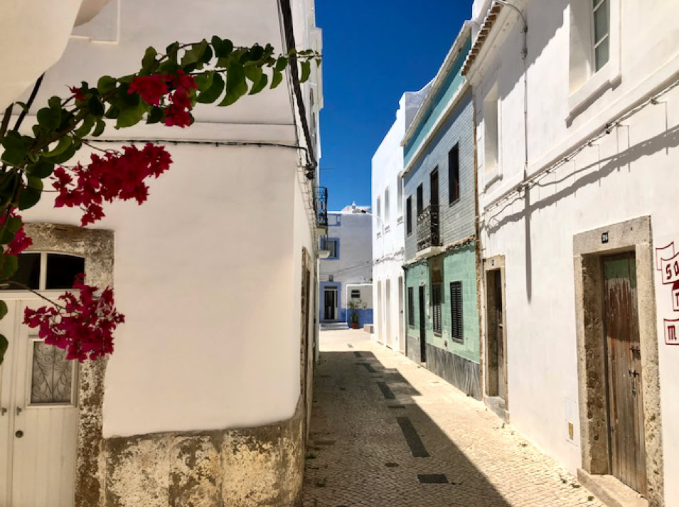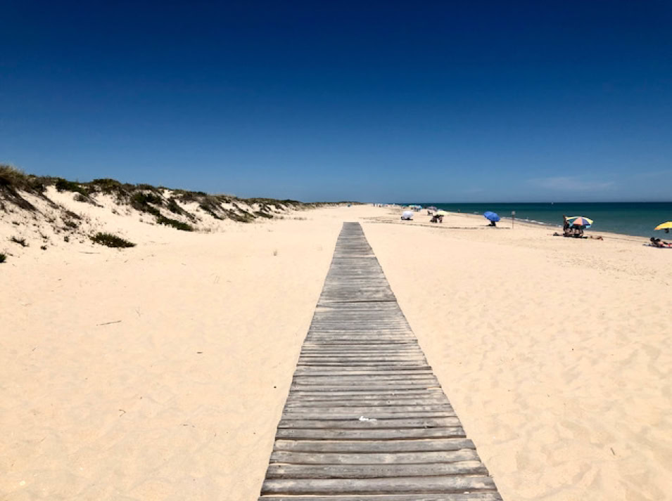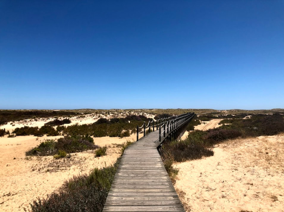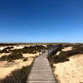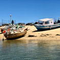 Wir machen einen ausgiebigen Spaziergang durch den kleinen aber sehr charmanten Ort , in dem das Fischereihandwerk noch zu Hause ist. Am Ende der Hauptstraße fügt sich ein langer befestigter Holzsteg über die Dünen bis zum langen Sandstrand. Hier genießen Ausflügler aus Olhão und Umgebung die Sonne und das Wasser des Antlantiks.