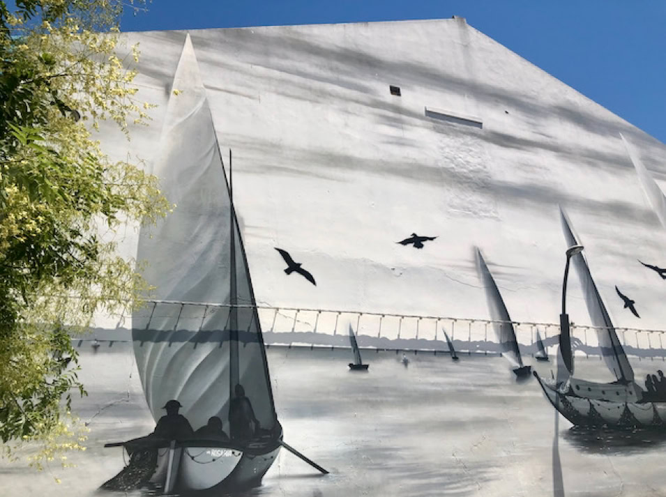 Auch in Olhão ist die Straßenkunst präsent und so finden wir Hausfassaden, welche aus dem Leben der Fischer und der Frauen in den Konservenfabriken erzählen. Es muss nicht immer ein Museumsbesuch sein, um etwas über die Geschichte der Menschen zu erfahren.