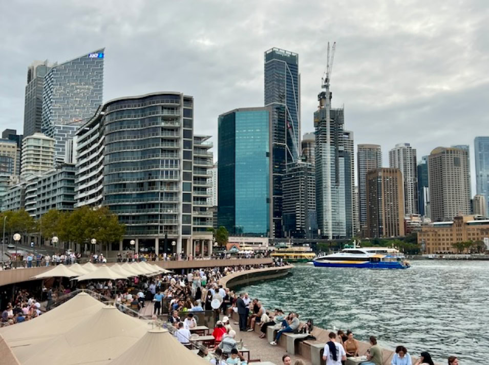Die Stadt ist bunt, lebendig und abwechslungsreich. Wir sind begeistert. Das öffentliche Verkehrsnetz, zu dem auch die Fähren gehören, ist sehr gut erschlossen. Neben riesigen Wolkenkratzern befinden sich Grünanlagen und Parks. Der königliche botanische Garten grenzt gleich an das Opernhaus und lädt zum Spazieren und Entspannen ein. Kakadus fliegen über die Wiese, und der weiße Ibis stochert mit seinem langen Schnabel in der Erde nach Essbarem.