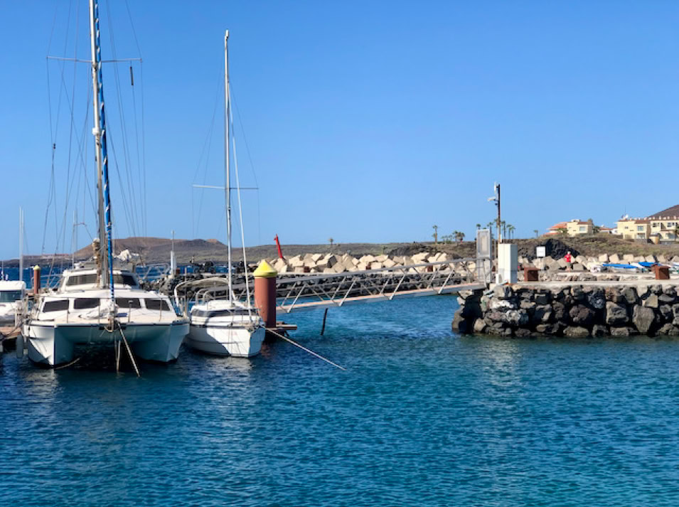 Anschließend geht es raus auf den Atlantik, wir setzen das Groß und erwarten den Wind. Nachdem wir die Landspitze Gran Canarias passieren, ist er da. Zwar nicht übermäßig stark, aber wir kommen gut voran und genießen das leise Rauschen der Wellen an unserer Manatee. Die Freude hält ca. 2 Stunden. Dann präsentiert uns der Atlantik eine spiegelglatte See. Sogar die Delfine gucken nur mal kurz aus dem Wasser und schlafen wie der Wind weiter. Irgendwie hält der Wind sich nicht an die Vorhersagen. Okay, dann wird es eine Motorfahrt bis nach Teneriffa. In den frühen Abendstunden erreichen wir den Hafen von San Miguel, machen Halt am Wartesteg und klarieren ein. Das Anlegen auf unseren Liegeplatz wird ein wenig zur Wundertüte. Erst mit der vierten Muringleine können wir uns festmachen. Die anderen drei hingen mit mehr oder weniger langen Enden nur im Wasser.