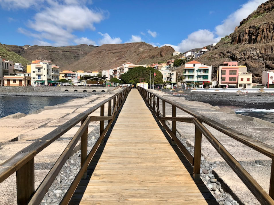 Ob nun die Bananenplantagen in Hemigua, welches sich dem Straßenverlauf lang hinwegziehen oder dem eher romantisch anmutendem Agulo mit seinen charmanten Gassen bis hin nach Vallehermoso, dem übersetzt „schönem Tal“, überall werden wir von einer grünen Landschaft empfangen.