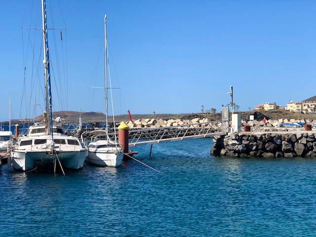 Uns gefällt die Atmosphäre im Hafen, kleine Fischerboote liegen bunt verstreut im Hafenbecken und in der Bucht schaukeln einige Segelboote in den Wellen. Und wie der Zufall es will, treffen wir auch hier liebe Segelfreunde aus Lanzarote wieder.