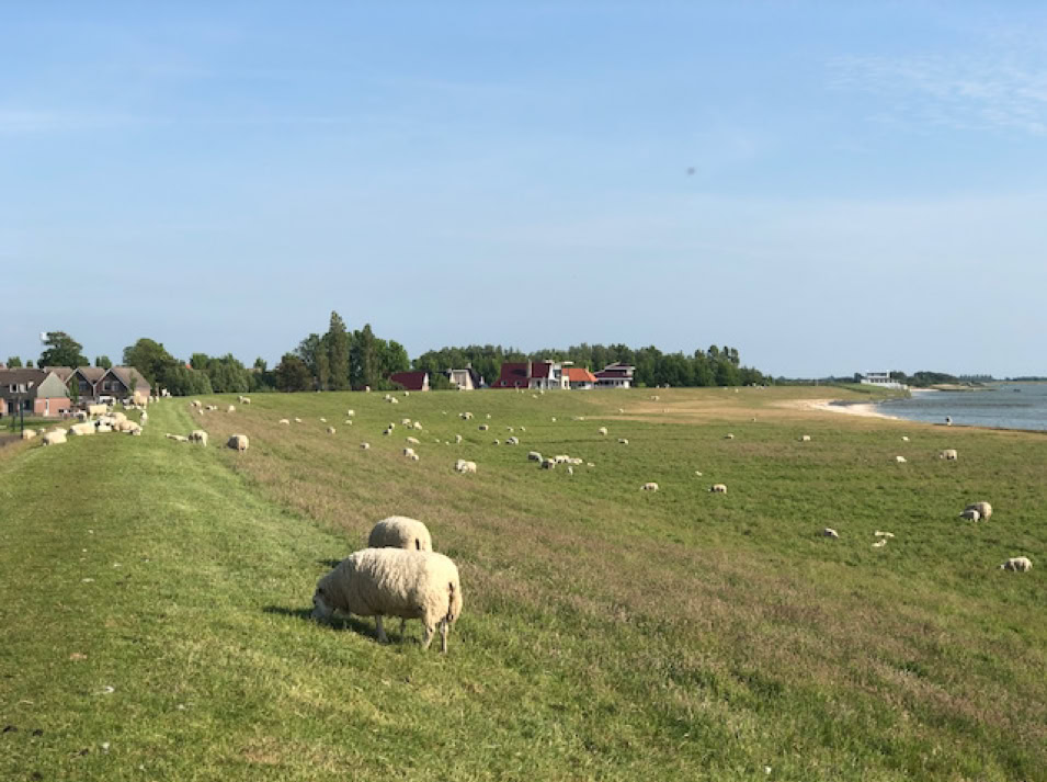 Es macht Spaß die idyllische Landschaft mit weiten Feldern, Wiesen, Kanälen und kleinen Häusern zu genießen. Auf den Deichen grasen die Schafherden.